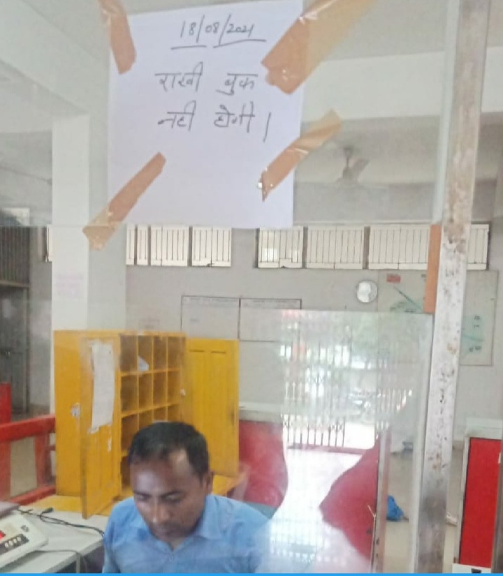 NCT अमेंठी-डाकघर ने लिस्ट चस्पा की है डाकखाने से नही बुक होंगी राखियां।दूर बसे भाईयो को इस बार बहनों के प्यार से रहना होगा महरूम,बही इस फरमान से बहनों में मायूसी भी देखने सुनने को मिल रही है।