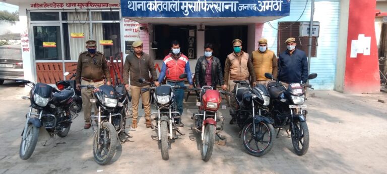चोरी की 06 मोटरसाइकिल के साथ 02 नफर अन्तर्जनपदीय मोटरसाइकिल शातिर चोर गिरफ्तार । जनपद अमेठी में अपराध एवं अपराधियों...